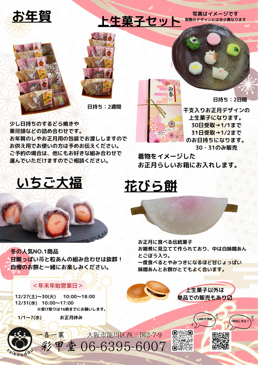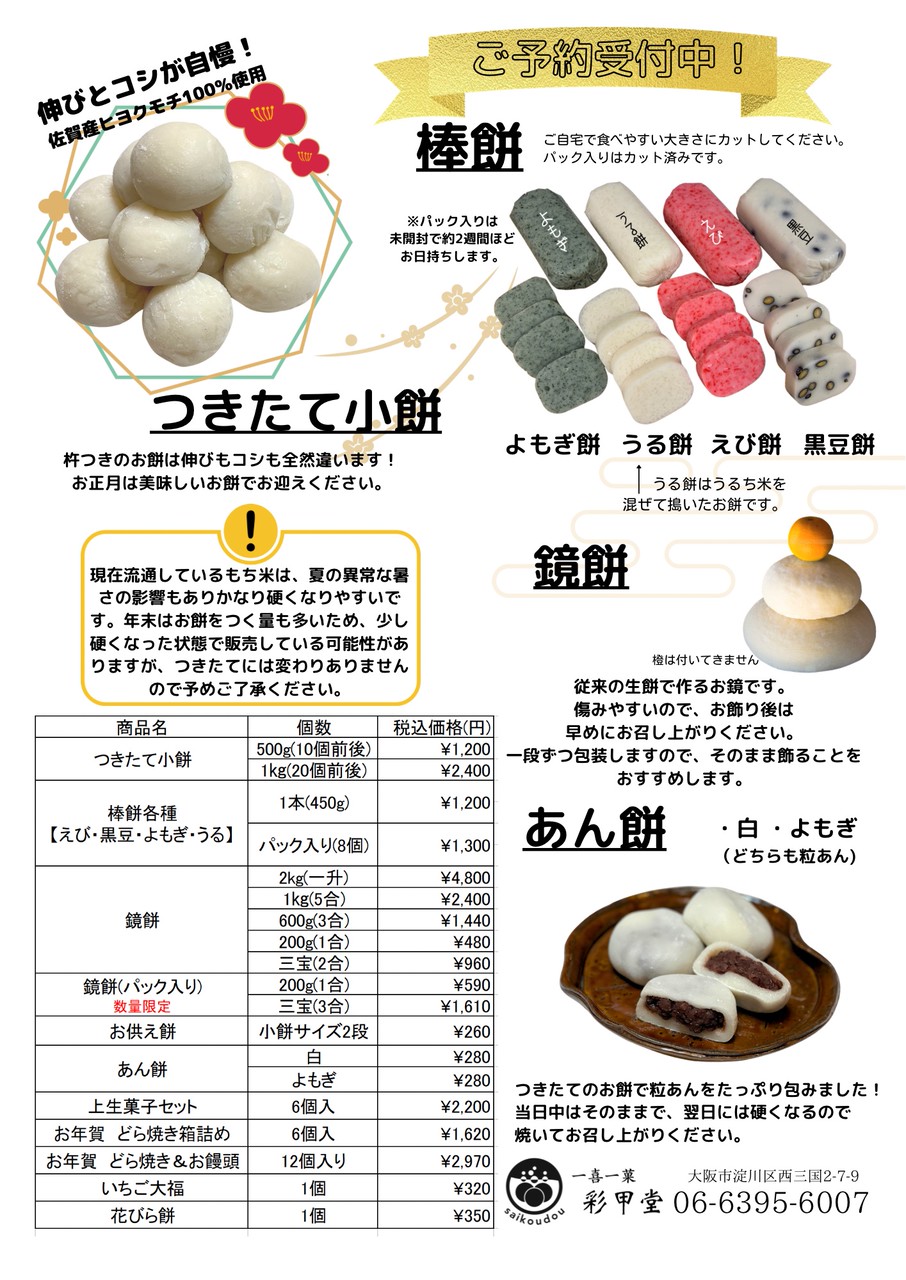 彩甲堂のお餅やお菓子でおいしいお正月をお迎えください。